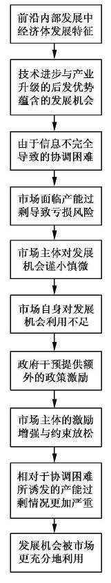 (三)一个拓展的理论分析框架。新结构经济学是关于经济结构及其变迁的新古典框架,核心原理是结构变迁的价格理论,包括以禀赋结构的供给与需求为主要内容的静态和动态一般均衡理论。新结构经济学形成了以禀赋结构升级和生产结构升级作为发展过程,以相对价格和自生能力作为微观基础,以发挥比较优势利用后发优势作为发展方法,以有效市场和有为政府作为政策导向的一套关于发展与转型的经济结构科学(付才辉,2015c)。作为新结构经济学的理论基础,林毅夫和付才辉(2015)将新结构经济学的基本原理归纳为三条:结构变迁的基本原理、结构转型的基本原理、结构变迁中政府作用的基本原理。在结构变迁中政府作用的新结构经济学基本原理中归纳了政府的两个最基本的理想干预维度:在具有外部性的公共禀赋结构升级(如软硬基础设施)以及在具有溢出效应的生产结构升级中的促进作用。政府干预在第一个维度上争议较少,事实上也已经形成了一门成熟的公共经济学。争议主要集中在第二个维度上,仅处理溢出效应(如知识溢出、先驱者效应等等)的政府干预的理想状态确实难以全面概括复杂的现实。尽管林毅夫(2012)也批评了旧结构主义用"低收入的外围国家"和"高收入的中心国家"两分法来描述发展中国家和发达国家之间产业结构与技术结构差异的局限性,认为发展中国家与发达国家之间的这种差异反映了处于一整个谱线上的不同发展水平,然而"连续可能并非处处可微"——市场自身在连续的每一水平上也不见得能够平滑地推进产业结构与技术结构的持续升级。因此,本文可能的贡献在于:通过潮涌现象揭示发展中国家在市场自身不能充分实现由结构变迁后发优势所蕴含的发展机会时,政府干预所引发的代价与收益以及市场与政府的互动方式的逻辑。下面就按照图 1所示的逻辑链条结合中国工业行业的经验例证依次展开分析。①