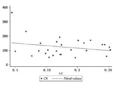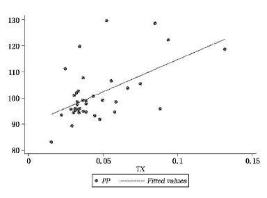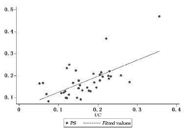 (二)政策闸门:潮涌通道的形成。如果投资潮涌与产能过剩并未引发价格下行、成本上行以及利润下滑,这很有可能是政府干预了市场机制之故。如图 4所示,在计划经济时期政府直接明补企业的做法在近期已经很少,企业直接的预算软约束渐渐转变为隐性的市场软约束。如表 1和表 2所梳理的,政府通过竞争政策(FM)、产权政策(SOE)以及财税政策(TX)、金融政策等政策组合影响市场产品价格和要素成本来扩大其所支持企业的利润空间以产生激励,从而形成潮涌的政策通道。具体来讲,如图 11和图 12所示,行业内企业数目与实际工业品出厂价格指数负相关、与主营业务成本率正相关。①(①一般而言,采用行业的市场集中度度量竞争程度更加准确,这里简单地以企业数目度量竞争程度。)我们推测这种相关性的背后包含了政府干预的信息。控制行业内企业数目的竞争政策可以影响到产品价格和要素成本,此类的政策包括淘汰"落后"产能、行业进入管制和兼并重组等等。比如,淘汰落后产能貌似是对投资潮涌之后的产能过剩的治理,但实际上预期到淘汰的标准是产量产能规模标准与质量技术规格标准,一方面在事后确实会淘汰一些中小企业以减少市场供给提高价格,另一方面也会事前加剧中大型企业更大规模的投产防止被事后淘汰。又比如,事后兼并重组等救治投资潮涌的支持政策实际上也是减轻潮涌的负面后果,等同于放松了事前的决策约束。如图 13和图 14所示,税率与实际工业品出厂价格指数正相关、与主营业务平均成本负相关。那么,财税政策也有可能是调节产品价格与要素成本的重要手段。在事前,政府为了鼓励企业利用可预期的发展机会,尤其是培育战略新兴产业,大多会提供优惠的财税政策。在事后,政府为了减轻企业产能过剩的压力也会提供财税政策优惠。此外还有一个国有经济比重问题。如图 15和图 16所示,国有经济占行业产值比重与实际工业品出厂价格指数正相关、与主营业务平均成本负相关。虽然国企改制之后,直接财政补贴软化国企预算约束的做法已经大为减少,但是由于国企与政府的特殊关系而具有超越市场的权力,这些权力集合能够有效形成行政性垄断以及市场分割保护,抬高下游销售产品的价格,降低上游供应要素的成本,这实际上也是一种隐性的间接补贴(刘瑞明和石磊,2011;刘瑞明,2012)。此外,按理说债务合约对投融资具有较强的约束能力,债务融资(DR)能约束过度的投资冲动(Hart和Moor,1995;Richardson,2006)。但是,如图 17和图 18所示,资产负债率与行业总资产增长率正相关、与产能利用率负相关。我们猜测债务合约的治理功能可能由于政府的金融政策干预,尤其是信贷政策干预而遭到破坏。辛清泉和林斌(2006)基于上市公司的数据发现国企债务约束被软化的可能性更大。付才辉(2015b)专门分析了金融干预在产能过剩与技术进步之间的两难困境。